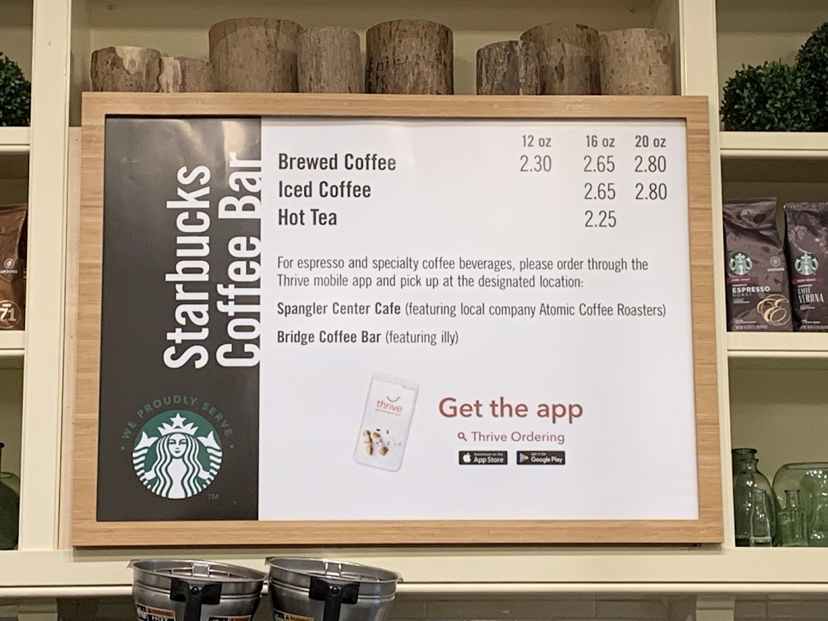 The menu at Spangler Food Court offers a variety of options suitable for breakfast, coffee breaks, and light meals. Visitors can find a selection of bakery items such as muffins, alongside a salad bar and fresh fruit choices. The food court also features grilled items including hamburgers, fish filets, and Mexican-style dishes, which are available from the grille area. Smoothies are available as well, complementing the lighter fare.